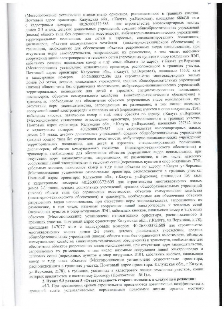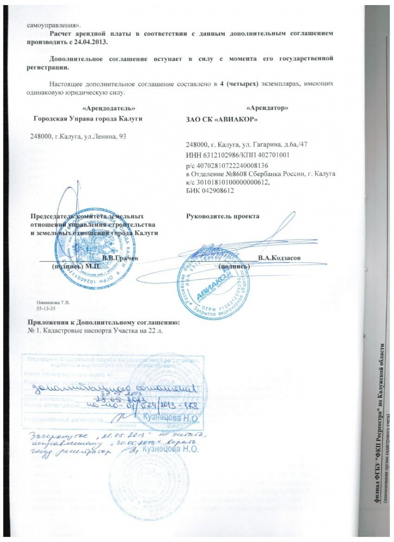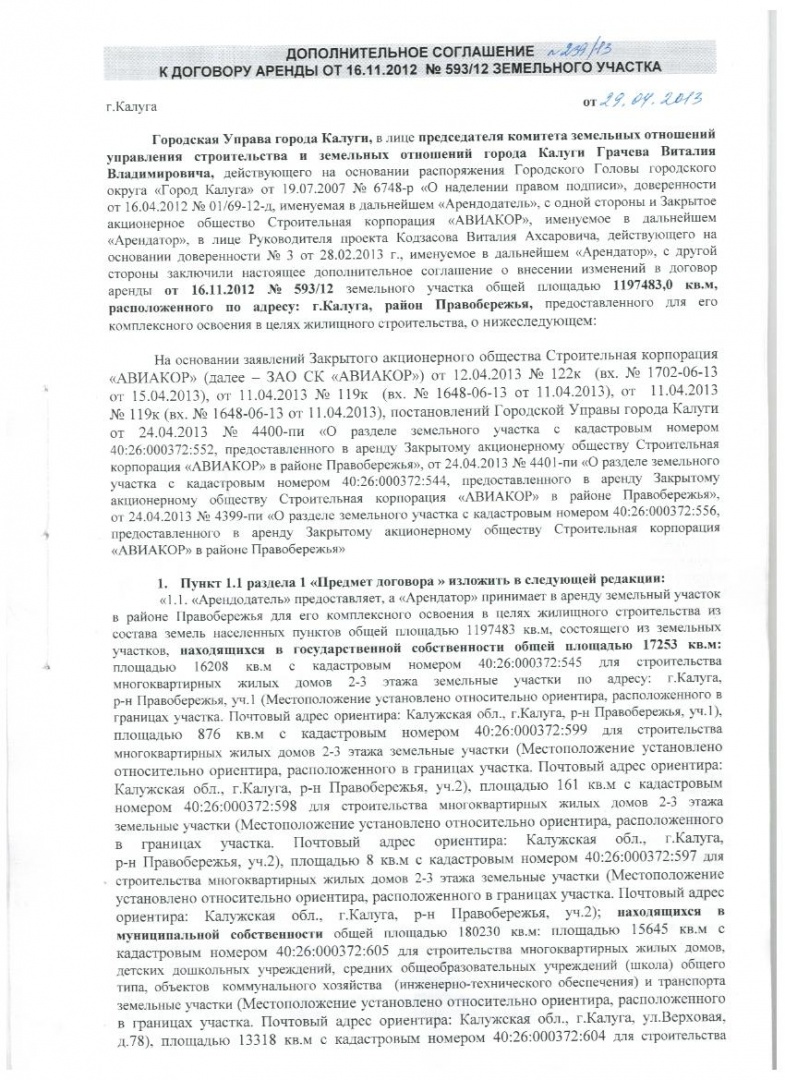 Дополнительные соглашения к договору аренды на участки