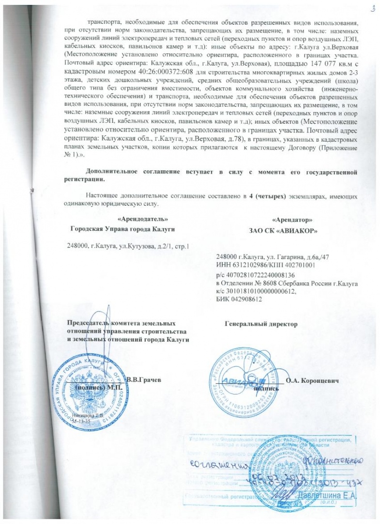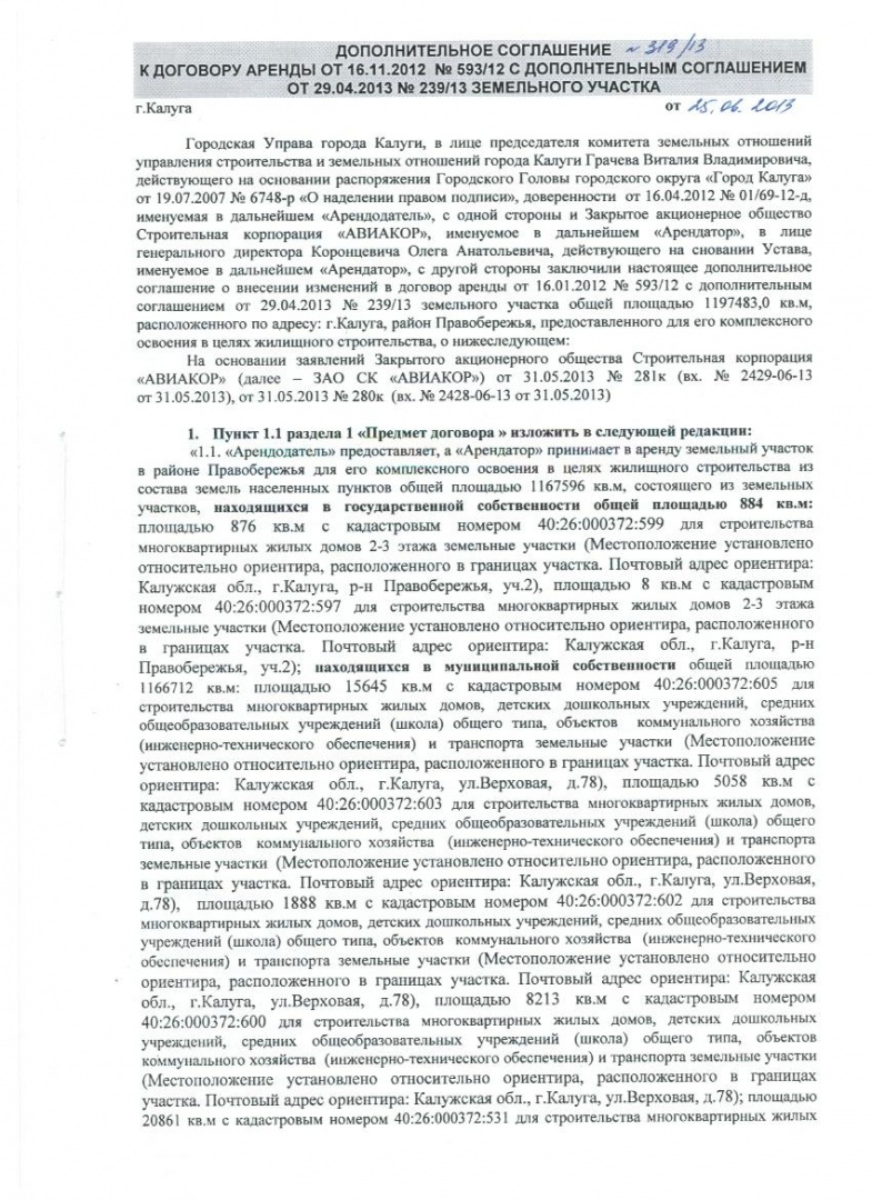 Дополнительные соглашения к договору аренды на участки