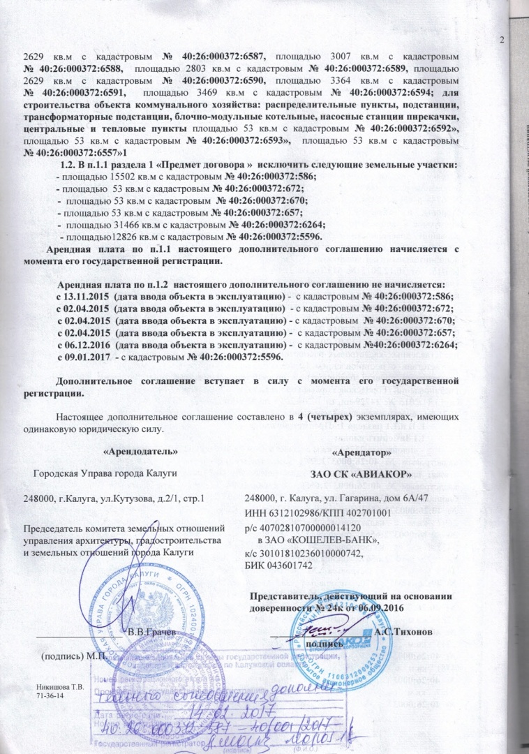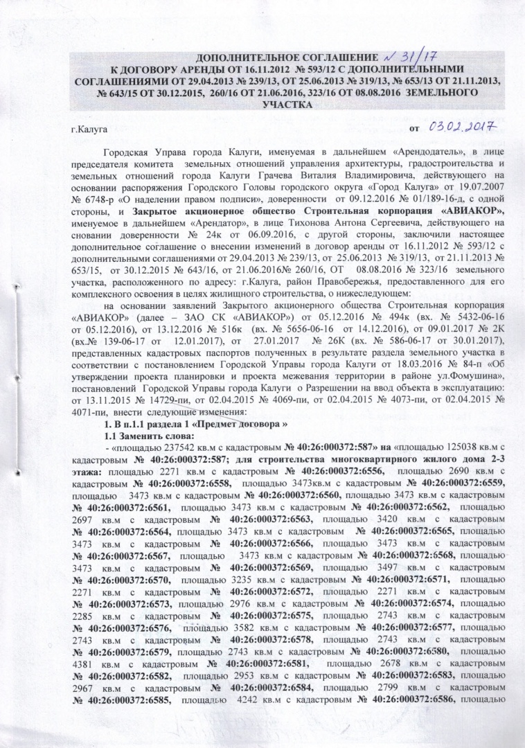 Дополнительные соглашения к договору аренды на участки