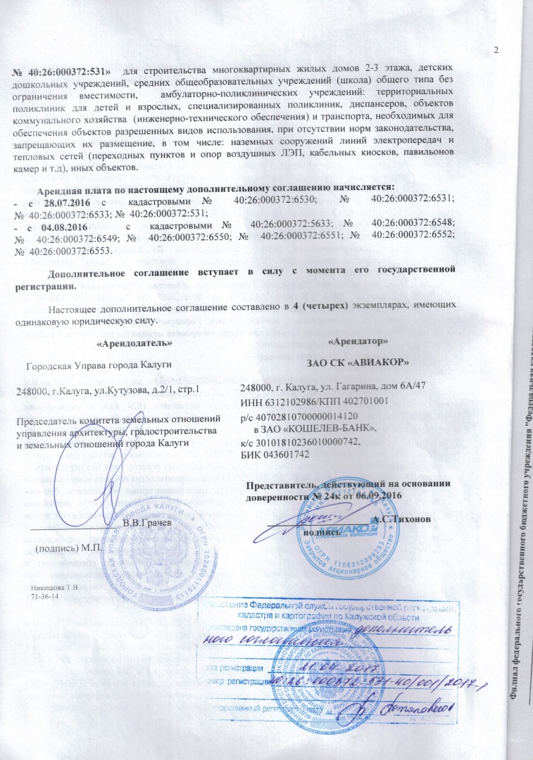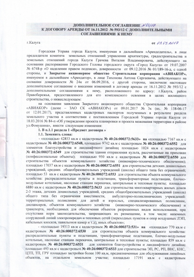 Дополнительные соглашения к договору аренды на участки