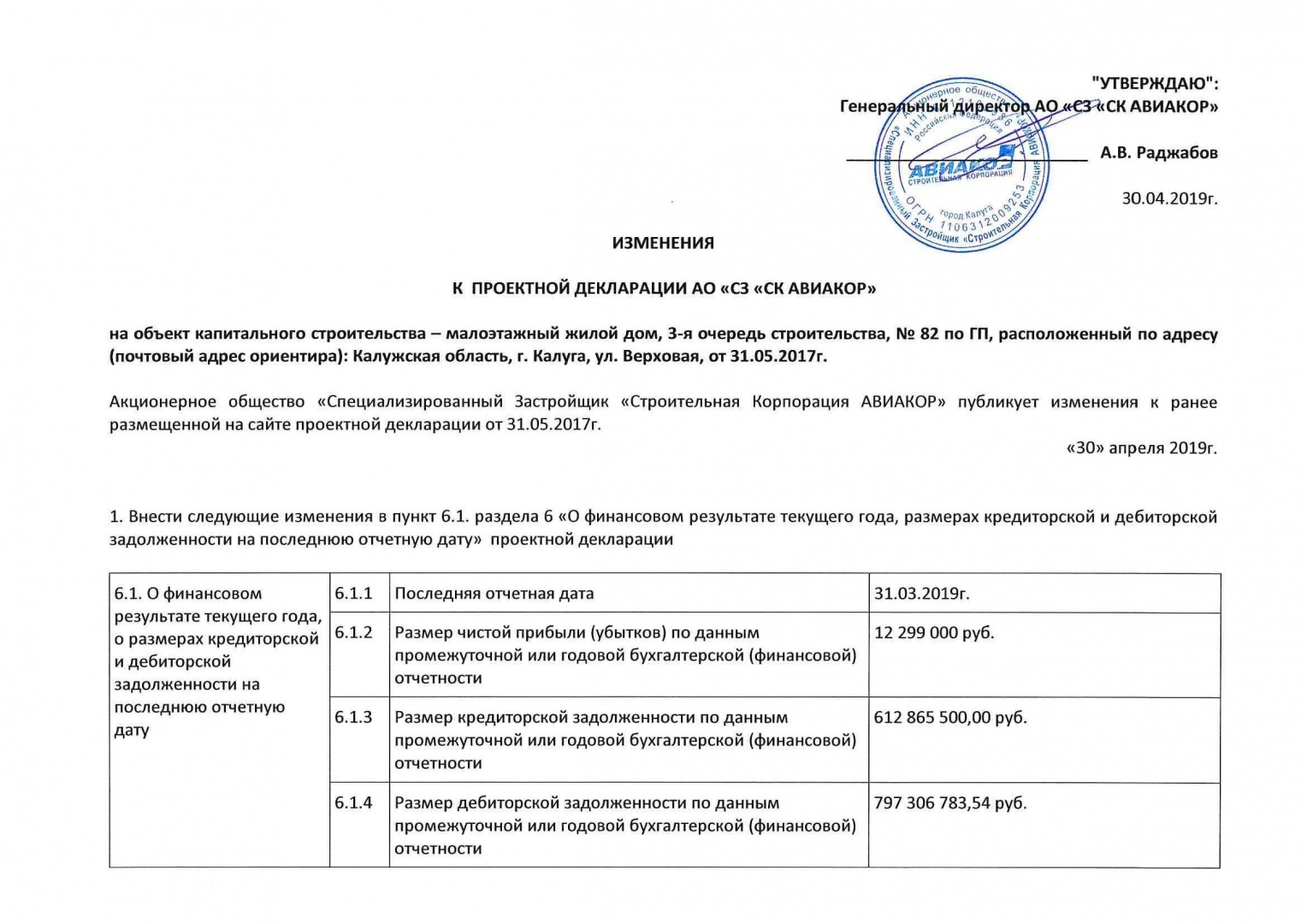 Изменения от 30.04.2019г. к проектной декларации "Малоэтажный жилой дом № 82 по ГП" от 31.05.2017г.