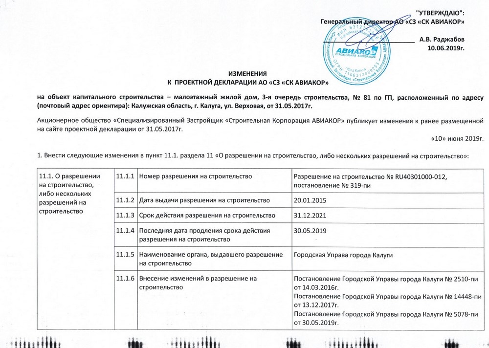 Изменения от 10.06.2019г. к проектной декларации "Малоэтажный жилой дом № 81 по ГП" от 31.05.2017г.