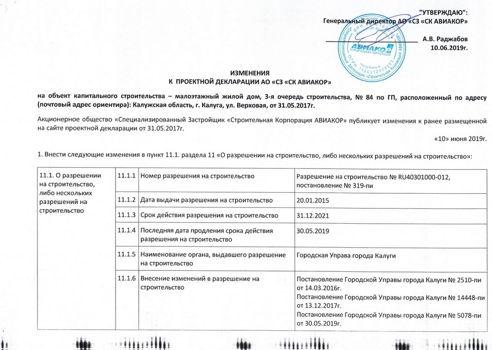 Изменения от 10.06.2019г. к проектной декларации "Малоэтажный жилой дом № 84 по ГП" от 31.05.2017г.