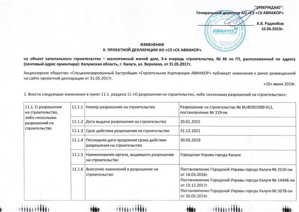 Изменения от 10.06.2019г. к проектной декларации "Малоэтажный жилой дом № 86 по ГП" от 31.05.2017г.