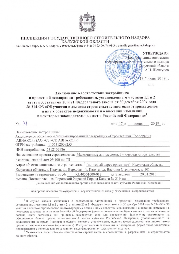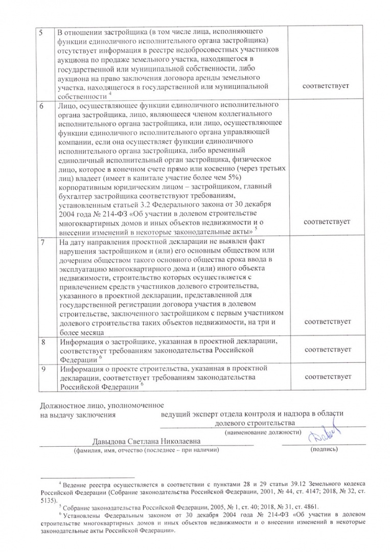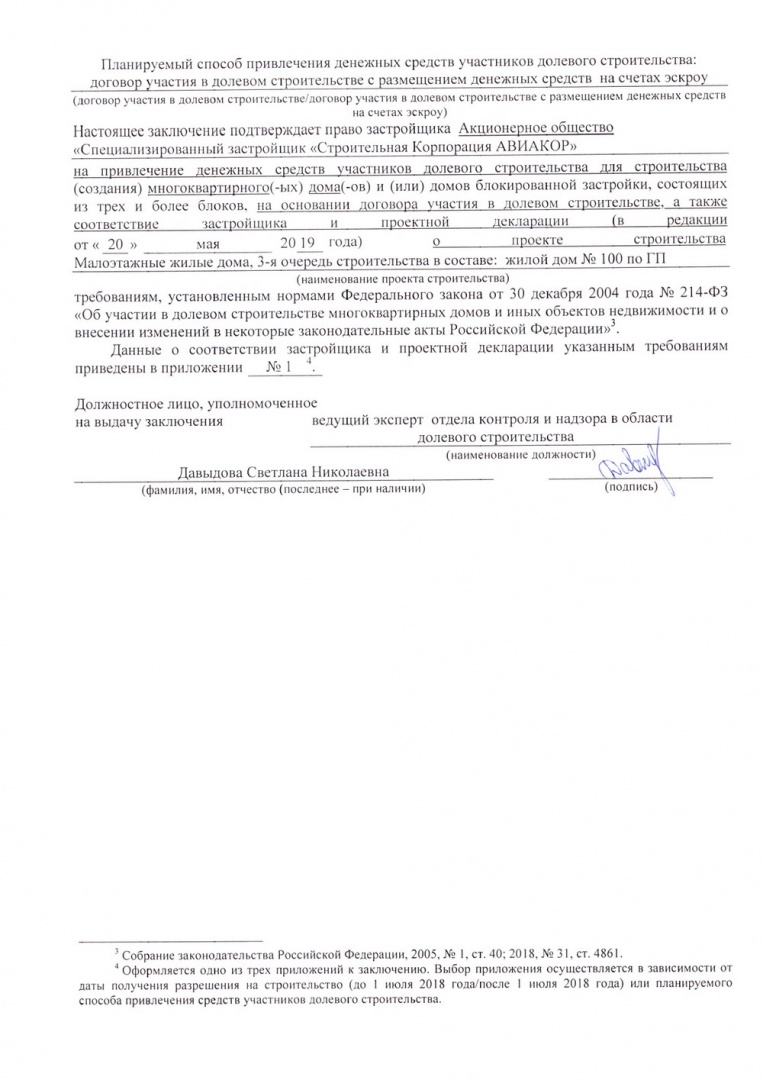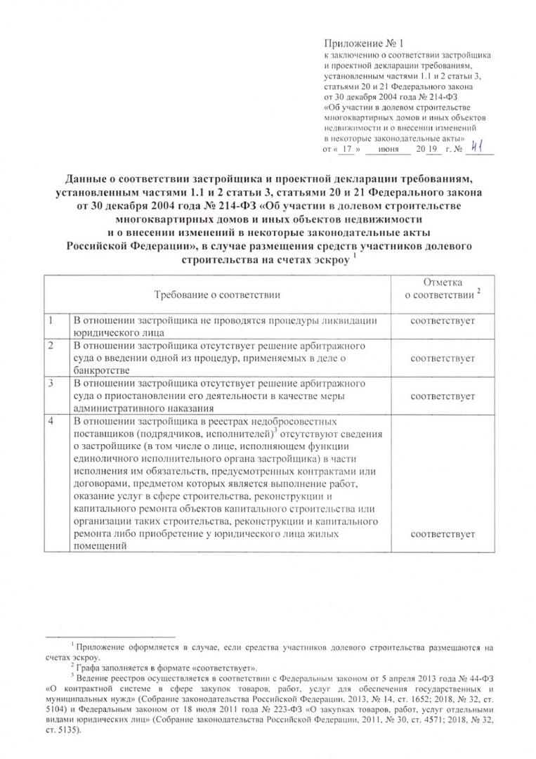 Заключение о соответствии застройщика и проектной декларации требованиям ФЗ от 30.12.2004 № 214-ФЗ, 100 дом по ГП