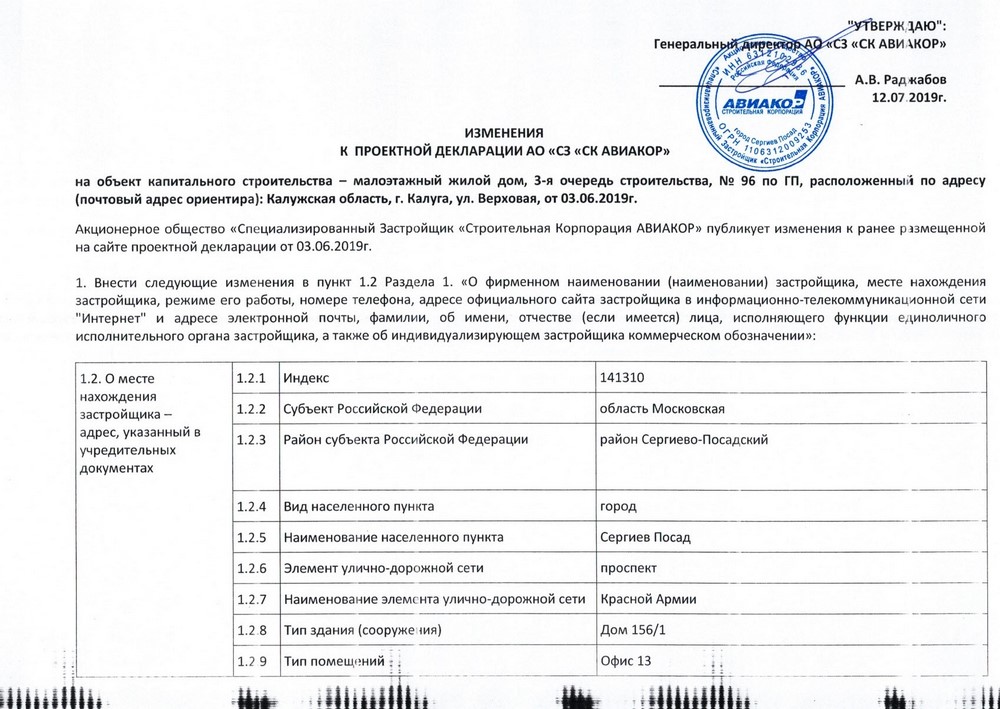 Изменения от 12.07.2019г. к проектной декларации "Малоэтажный жилой дом № 96 по ГП" от 03.06.2019г.