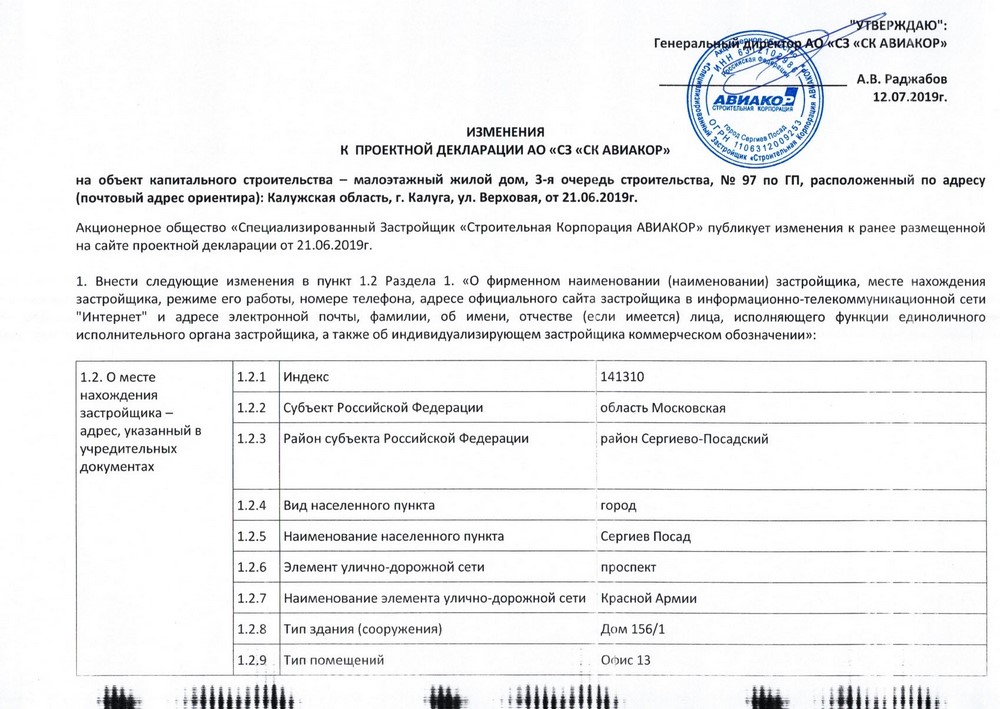 Изменения от 12.07.2019г. к проектной декларации "Малоэтажный жилой дом № 97 по ГП" от 21.06.2019г.